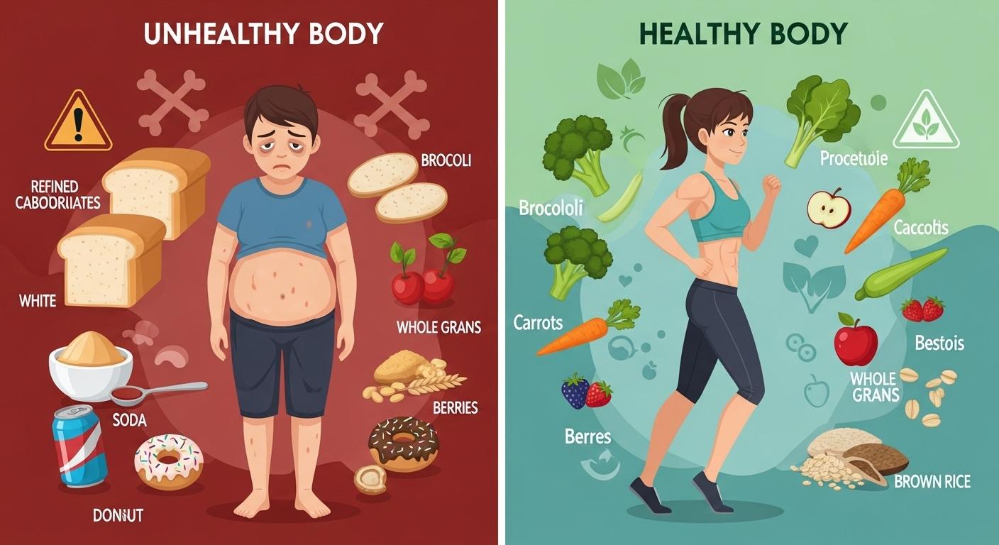 정제된 탄수화물은 혈당을 급격하게 올리고 인슐린의 과다 분비를 유발하게 됩니다. 저 역시 과거에 빵과 면 요리를 즐기며 만성 피로에 시달린 경험이 있습니다. 이러한 악순환이 지속되면 비만과 당뇨병 같은 대사 질환으로 이어질 가능성이 매우 높으므로 각별한 주의가 필요합니다.